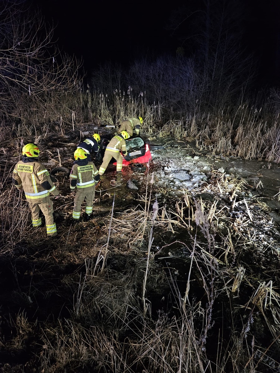Jak się okazało w pojeździe zanurzonym do połowy w wodzie znajdowały się dwie osoby, 46 letni mieszkaniec gminy Ludwin oraz 45 letnia mieszkanka gminy Cyców. W wydostaniu kobiety z pojazdu niezbędna była pomoc strażaków.